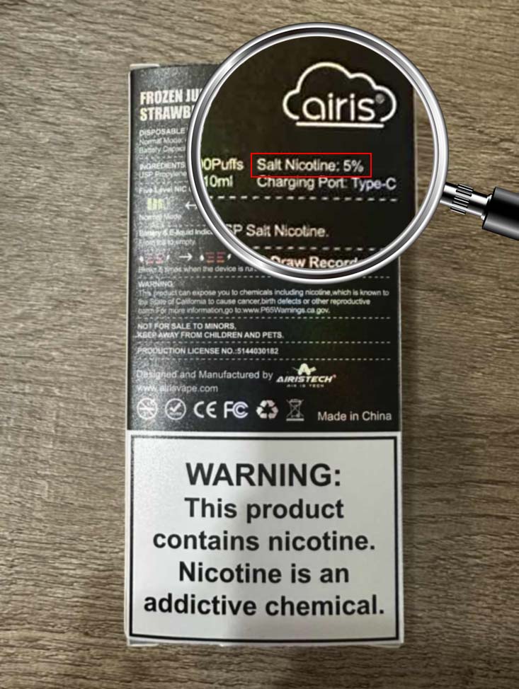 - “Nicotine: 2%” or “Nicotine: 5%”