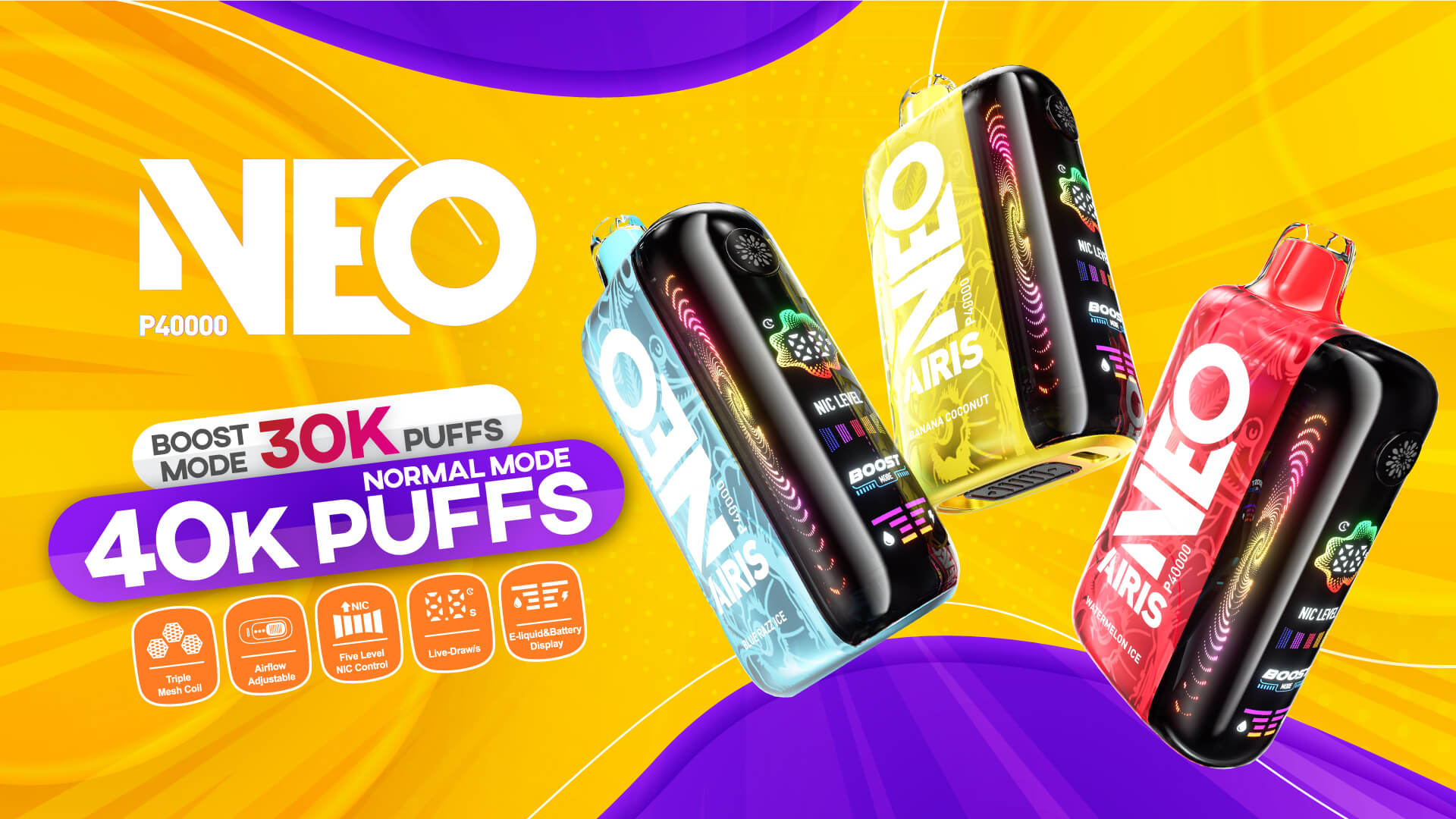 Airis Neo P40000 triple-mesh coil technology delivers instant power, richer flavor, and extended lifespan